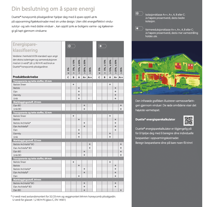 Riktig brukt kan Duette® redusere varmetap gjennom vinduer med opptil 40 %, avhengig av vindu og boligtype.