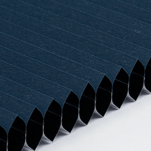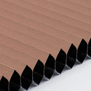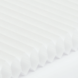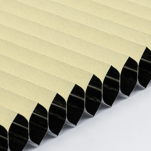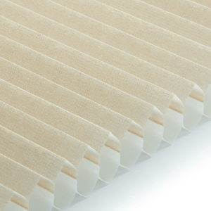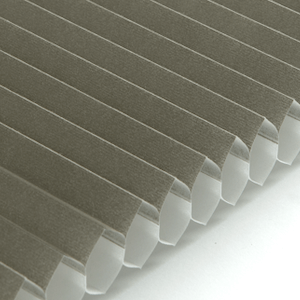 Plisségardinen har de karakteristiske elegante foldene som gir et stilrent uttrykk i vinduet. Når gardinen trekkes opp, brettes den pent sammen og tar minimalt med plass.