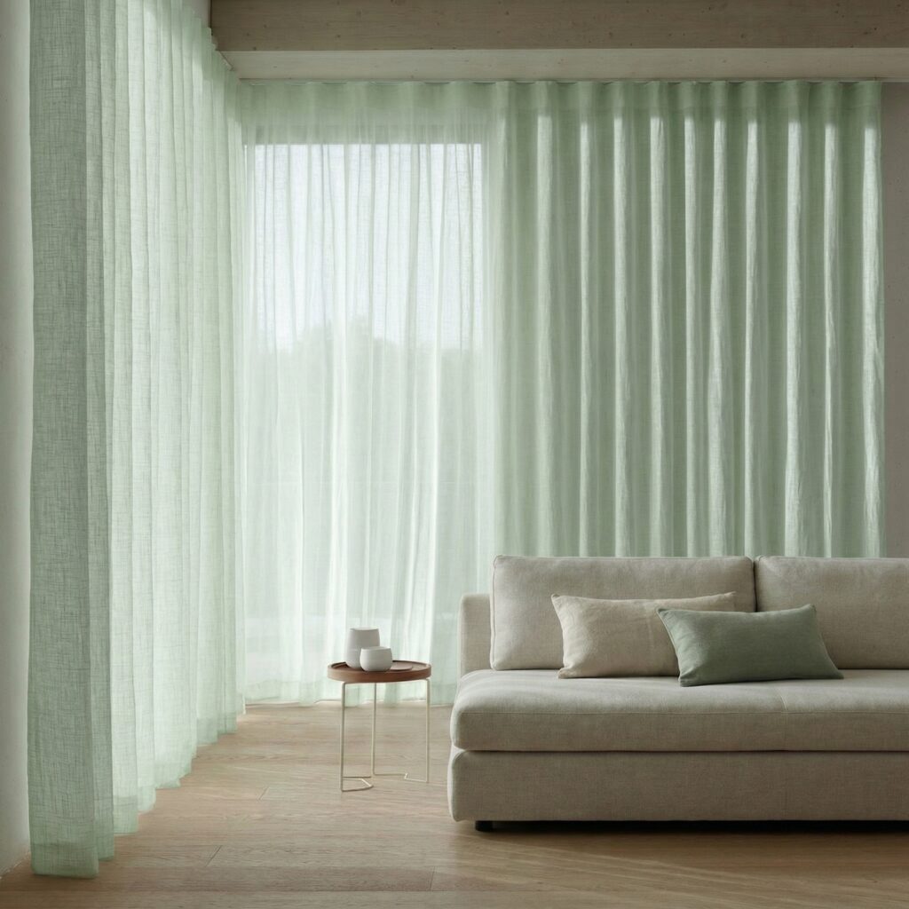 Adona-gardinene passer også perfekt sammen med en lysdempende gardin, som gir deg en mer eksklusiv og sofistikert følelse i rommet. Denne kombinasjonen vil ikke bare gi deg en optimal lyskontroll, men også gi rommet ditt et unikt utseende og et preg av personlig stil.