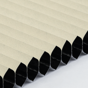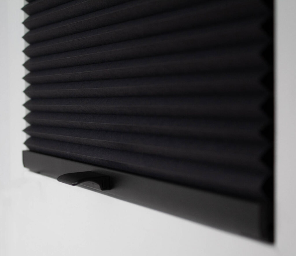 Plisségardinen monteres øverst i vinduskarmen og trekkes ned som en vifte for optimal solskjerming og lyskontroll.